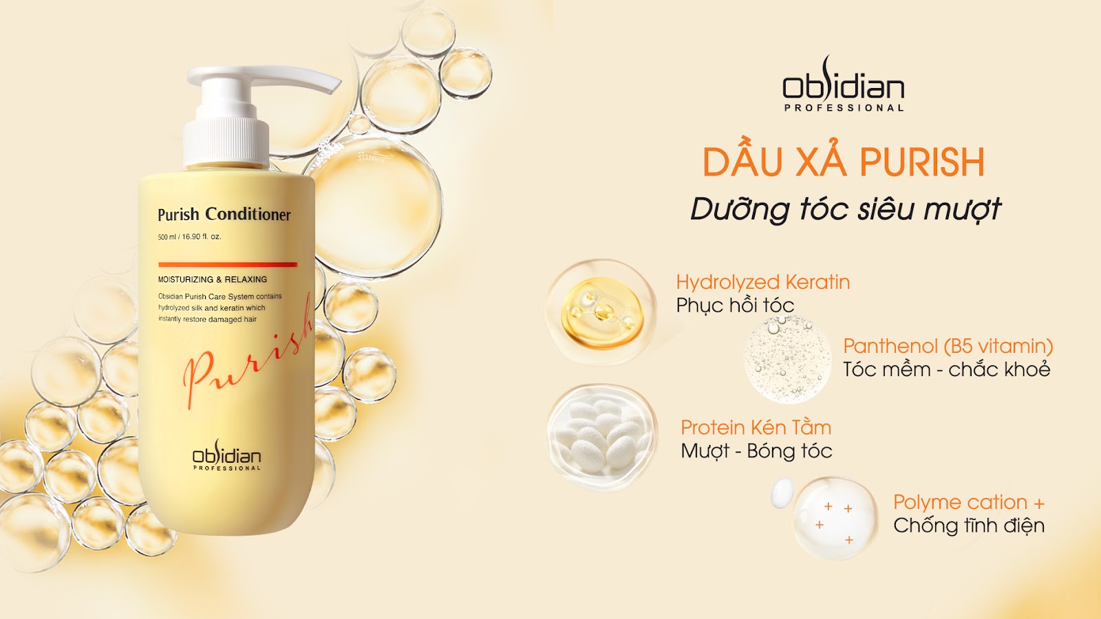 Obsidian ra mắt bộ sản phẩm dưỡng tóc siêu mượt Purish Obsidian – “chiến binh” chăm sóc và phục hồi mái tóc bằng những dưỡng chất tinh khiết nhất như protein kén tơ tằm, tinh dầu hạnh nhân, keratin thuỷ phân và vitamin B5. Sản phẩm còn được kết hợp với công nghệ hương thơm đa tầng thơm ngọt của trái cây, mang đến sự hoàn hảo tuyệt mỹ cho bộ sản phẩm dưỡng tóc siêu mượt Purish Obsidian.